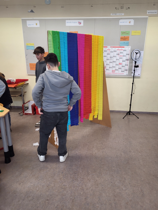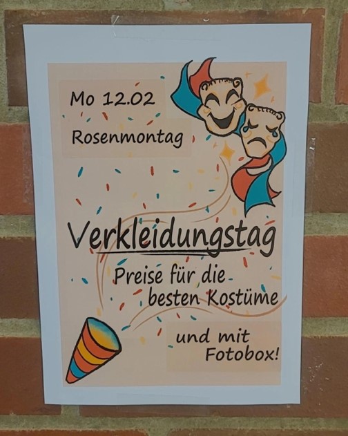 Verkleidungstag mit Präsentation der Kostüme auf dem roten Teppich in der großen Pause in der Pausenhalle |