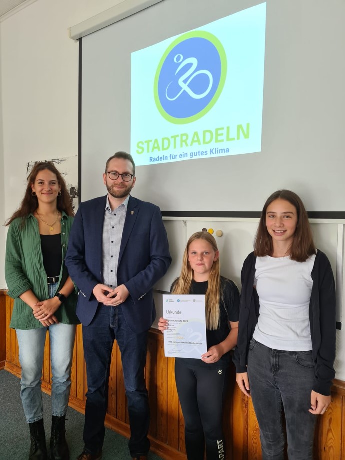 Die Klasse 7.1 gewann den Stadtradelwettbewerb und erhielt eine Urkunde von Herrn Brandt.