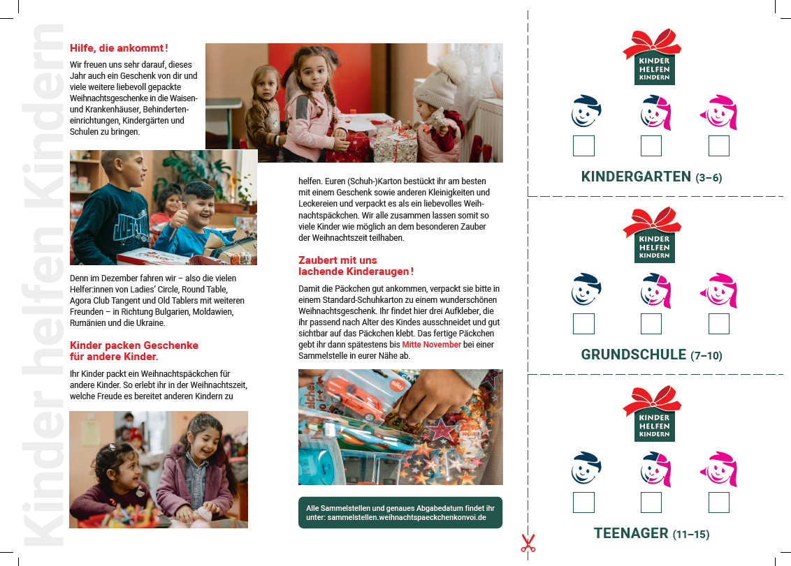 Dazu wäre es schön, wenn viele liebevoll gepackte Weihnachtspakete zusammenkommen, die sich dann in osteuropäische Länder auf den Weg machen und Kinderaugen zum Leuchten bringen.