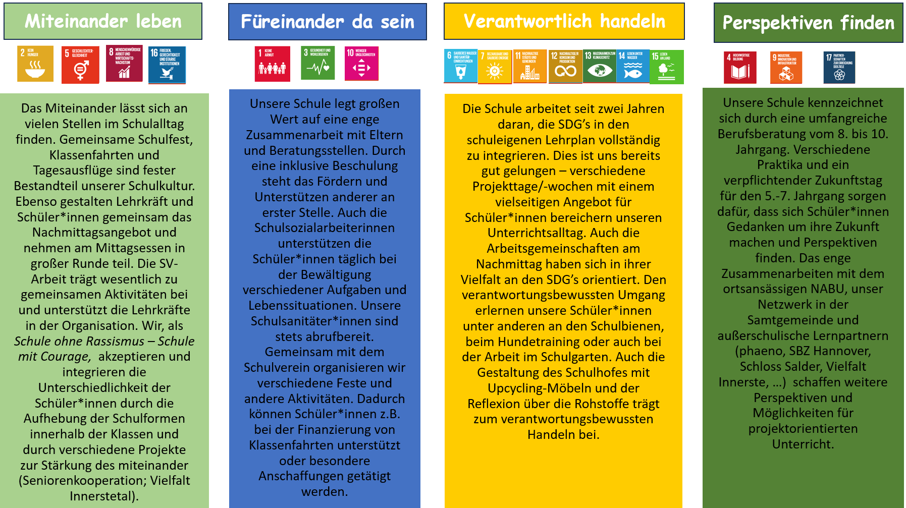 Miteinander leben - füreinander da sein - verantwortlich handeln - Perspektiven finden bedeutet aber auch: