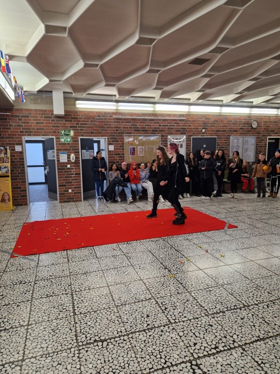 Verkleidungstag mit Präsentation der Kostüme auf dem roten Teppich in der großen Pause in der Pausenhalle |