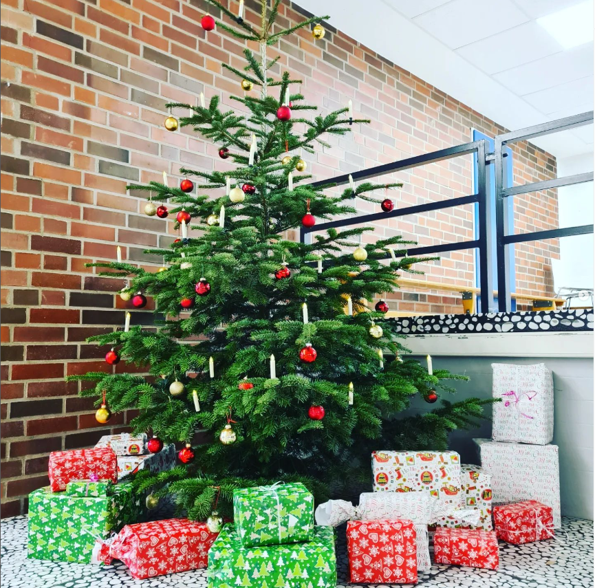 Jährliches Schmücken des Weihnachtsbaumes in der Pausenhalle |