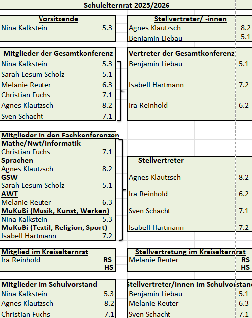 Elternvertreter für die Klassenelternschaft im Schuljahr 2025/26