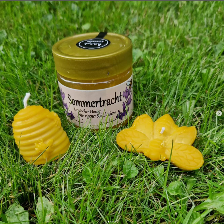 Seit 2017 beherbergt die Schule im Innerstetal Schulbienen. Aus einem Volk sind schnell zwei, drei vier Völker geworden, die unsere Schule und Schülerschaft mit schuleigenem Honig versorgen. Seit zwei Jahren stellen wir neben der Früh- und Sommertracht Honig auch Bienenwachskerzen her. Die Schulerzeugnisse werden über unsere Schülerfirma unter der Leitung von Herrn Perschel und Herrn Heinemann vertrieben. Aber auch auf Schulfesten und Basaren sind unsere Produkte zu erhalten.
